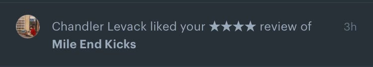 As I exited the theatre following a screening of Mile End Kicks, the smell of popcorn induced a Pavlovian response to open up Letterboxd. So naturally, I left a cheeky little quip about the film as I scurried out of Scotiabank theatre in search of a suitable stoop on which to perch and guzzle my thermos full of soup. While in line for an In Conversation with Ryan Reynolds event, my stomach now full of Tuscan red lentil soup, a little notification appeared on my phone: “Chandler Levack liked your ⭐⭐⭐⭐ review of Mile End Kicks”. The film is so wittily written, leaving a smile perpetually plastered on my face, so the fact that Chandler Levack liked my little vibrator joke came as the highest honour.